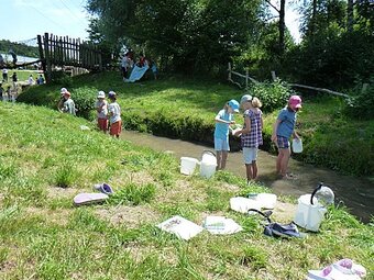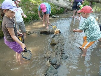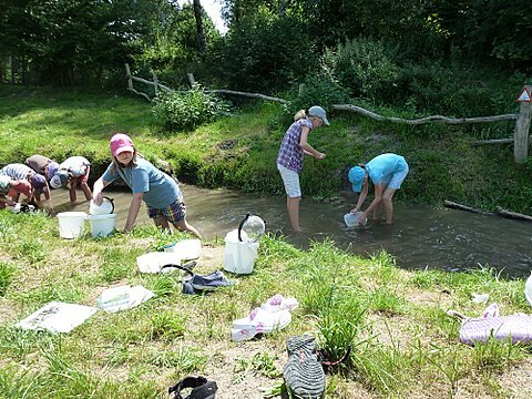 24 Kinder vom Ferienpass Bremgarten/Wohlen/Berikon konnten am vergangenen Dienstag die Bünz mit allen Sinnen begreifen: Wann schwimmt ein Holzschiffli und was braucht es, damit sich ein Wasserrad dreht? Welche Tiere leben im und am Wasser und wie fühlt es sich an, blind durchs Wasser zu gehen? Ein Bachzvieri rundete den tollen Nachmittag ab.