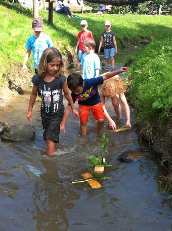 Kinder vom Ferienpass Bremgarten/Wohlen/Berikon konnten die Bünz mit allen Sinnen begreifen: Wann schwimmt ein Holzschiffli und was braucht es, damit sich ein Wasserrad dreht? Welche Tiere leben im und am Wasser und wie fühlt es sich an, blind durchs Wasser zu gehen? Ein Bachzvieri rundete den tollen Nachmittag ab.