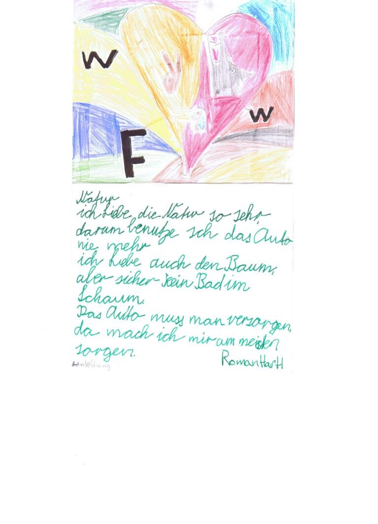 Liebe Kinder, vielen Dank für die schönen Zeichnungen, die ihr eingeschickt habt. Das Thema "Gemeinsam für die Natur" habt ihr eindrücklich umgesetzt. Wir hatten es nicht leicht - doch jetzt stehen die Gewinner fest: