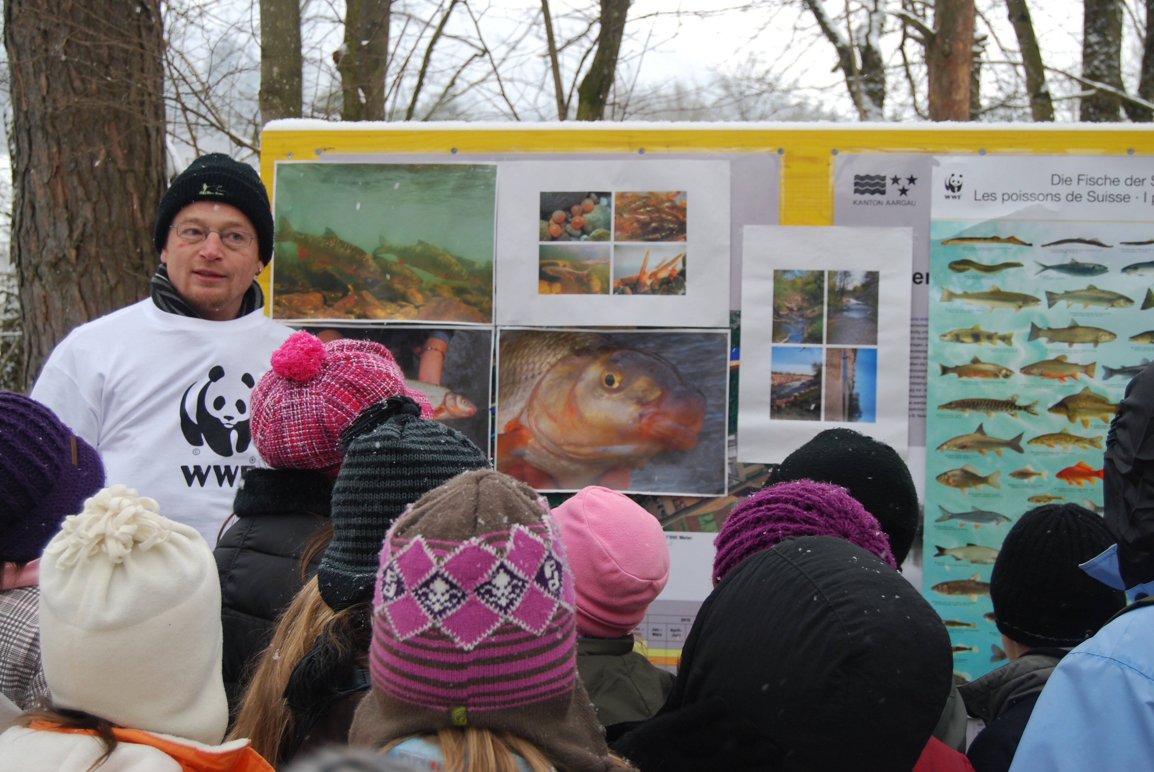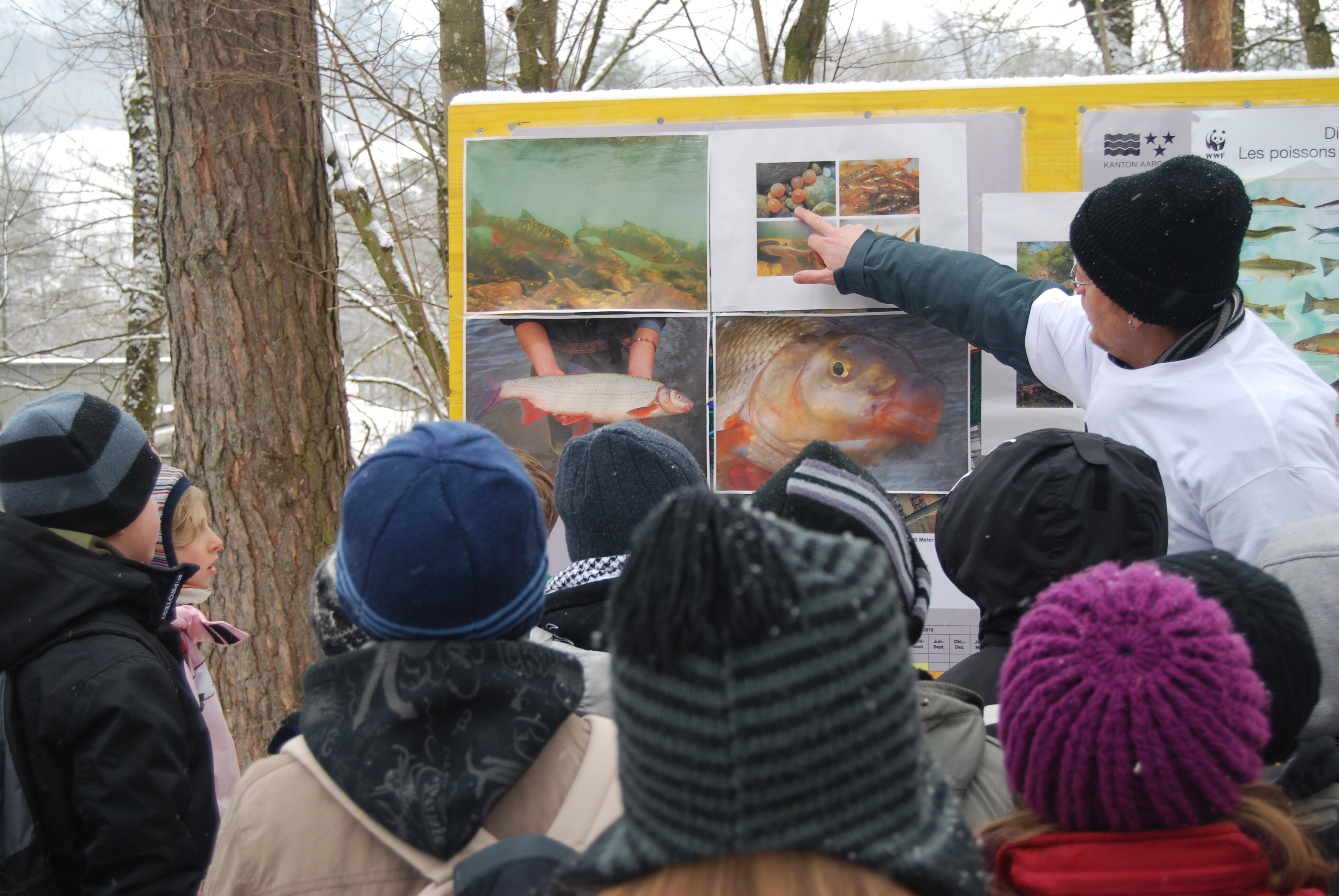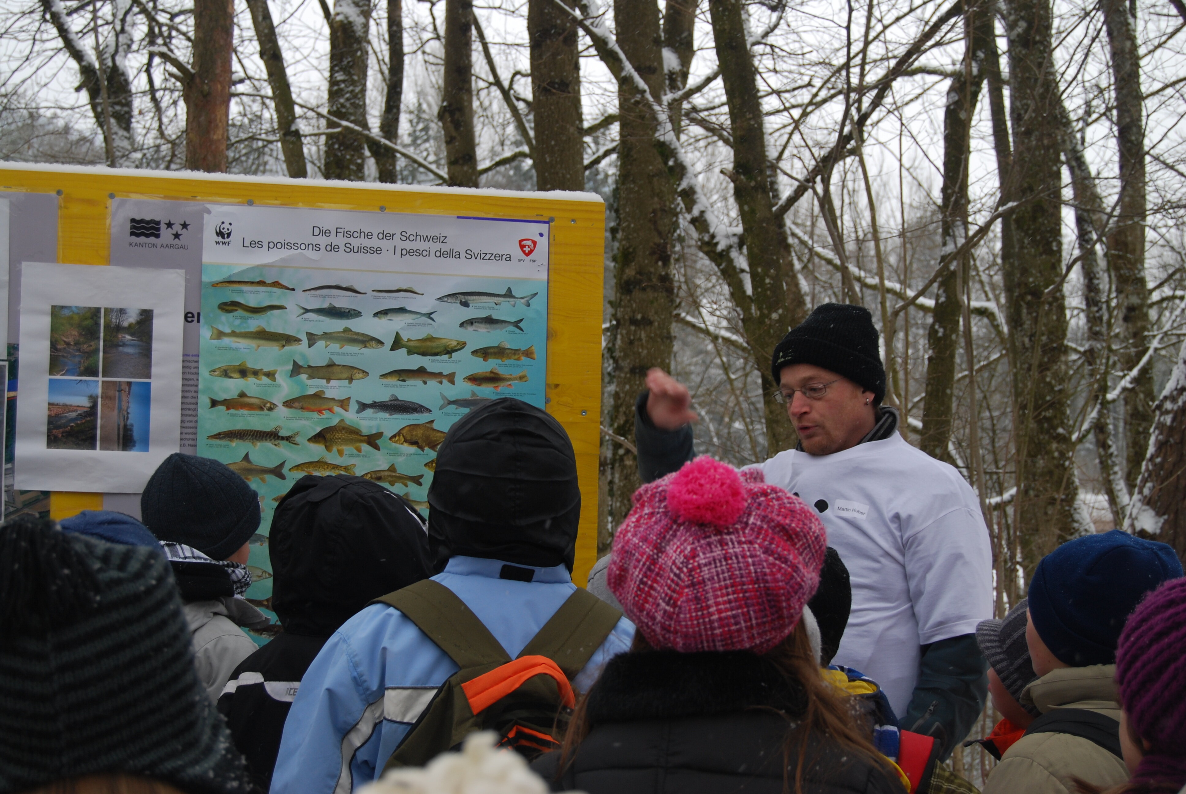 Im März fanden in Rupperswil Exkursionen mit der gesamten Primarschule an die Aare statt. An drei Posten konnten die Schülerinnen und Schüler sich aktiv mit dem Lebensraum Fliessgewässer und seinen Bewohnern, wie zum Beispiel dem Biber und der Nase, befassen. Auch dank einem wärmenden Feuer und motivierten Helfern war die Stimmung sehr gut.