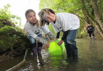 Schülerinnen und Schüler aus Zeiningen haben heute 4000 Junglachse im Möhlinbach ausgesetzt. Damit übernehmen sie beim WWF-Projekt Lachs COMEBACK eine wichtige Rolle. Denn nach ihrer Reise in den Atlanktik sollen die Lachse wieder in den Möhlinbach zurückkehren.