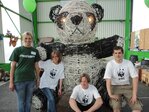 Der WWF Aargau war am Samstag, 21.Mai 2011 mit (Panda)bärenstarkem Einsatz am Abfallfest im Reyclingparadies Reinach präsent. Herr Daniel Waldner, freischaffender Künstler aus Laufenburg, hatte aus Alteisen ein Pandagerüst erstellt. Dieses wurde mit viel Freude und körperlichem Einsatz von Gross und Klein mit Kabeln und Schläuchen umwickelt. Stunde um Stunde wuchs das Gerüst zum WWF-Recyclingpanda heran. Unser Panda bleibt vorerst im Recyclingparadies Reinach heimisch und freut sich über Besuche zur Besichtigung. Was danach mit dem Pandabären passiert ist noch ungewiss. Sollten Sie eine gute Idee haben, teilen Sie uns doch diese mit.